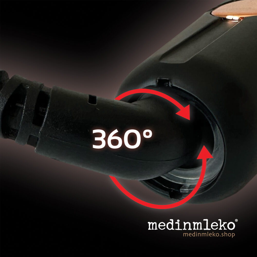 ![]() Dolg in vrtljiv kabel 380° Profesionalni likalnik za lase mStyler ONE ima visokokakovostni gumiran kabel s trakom za shranjevanje. Kabel je podaljšane dolžine 2.5 m, z zasnovo proti zapletanju in vozljanju, ki se vrti za 360° in omogoča popolno fleksibilnost pri uporabi tako doma kot v salonu. |
