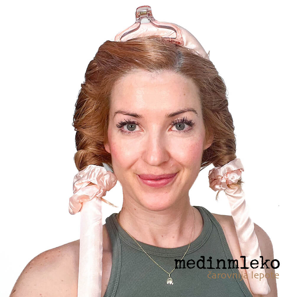 - Ko so vsi lasje naviti okrog rolerja, jih na koncu spnite s priloženo elastiko